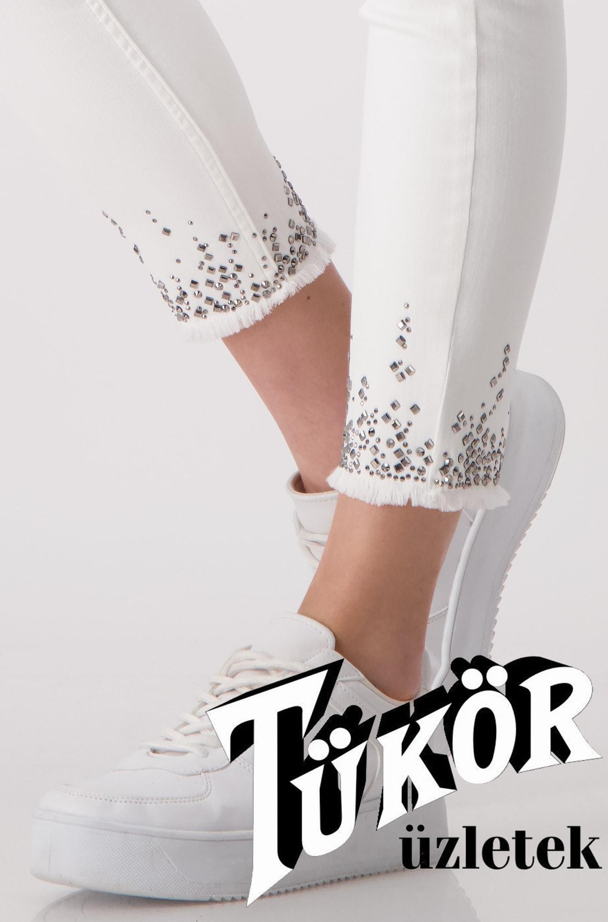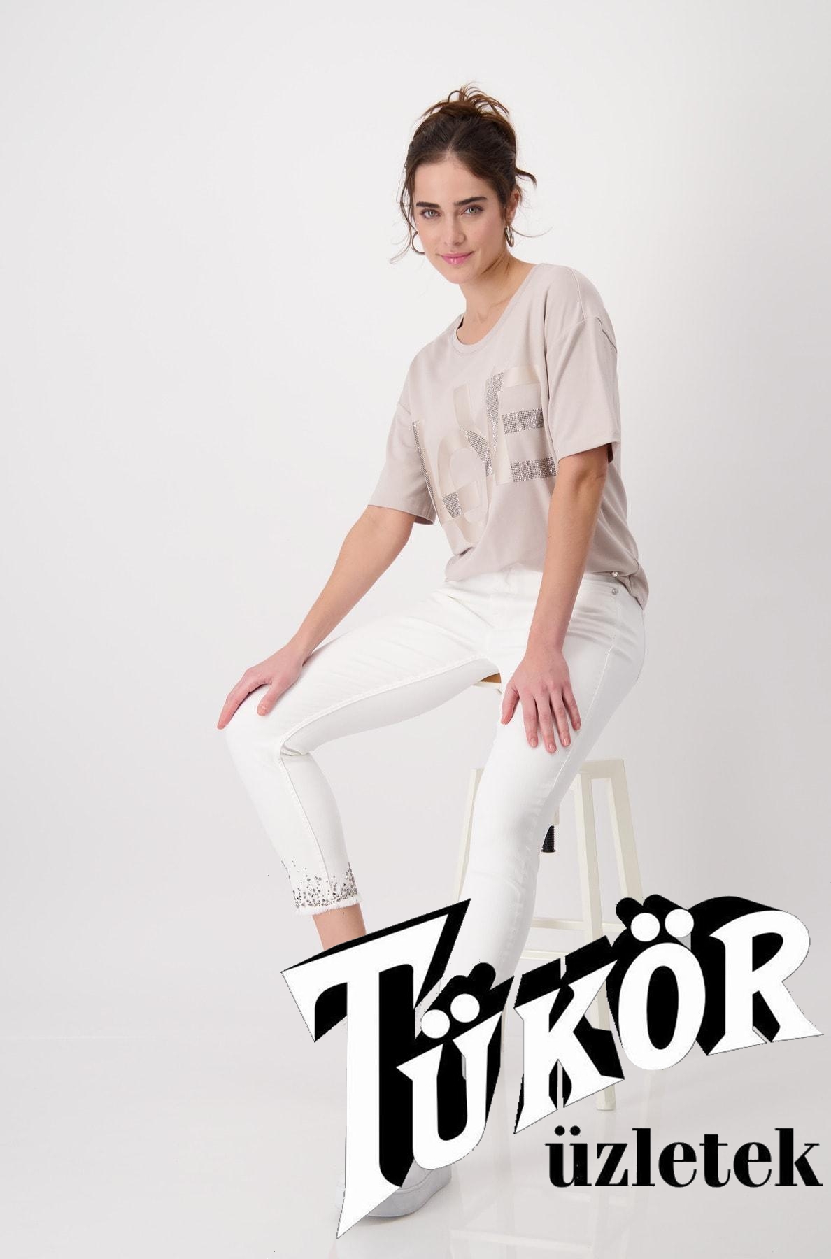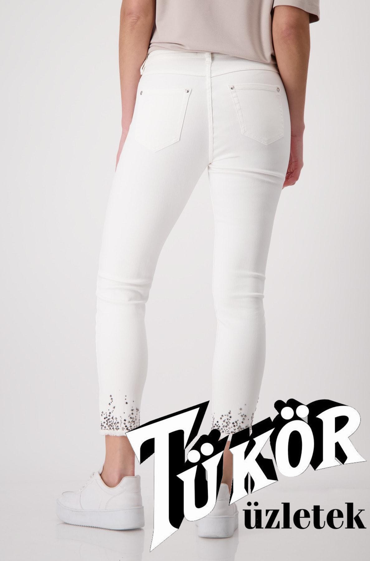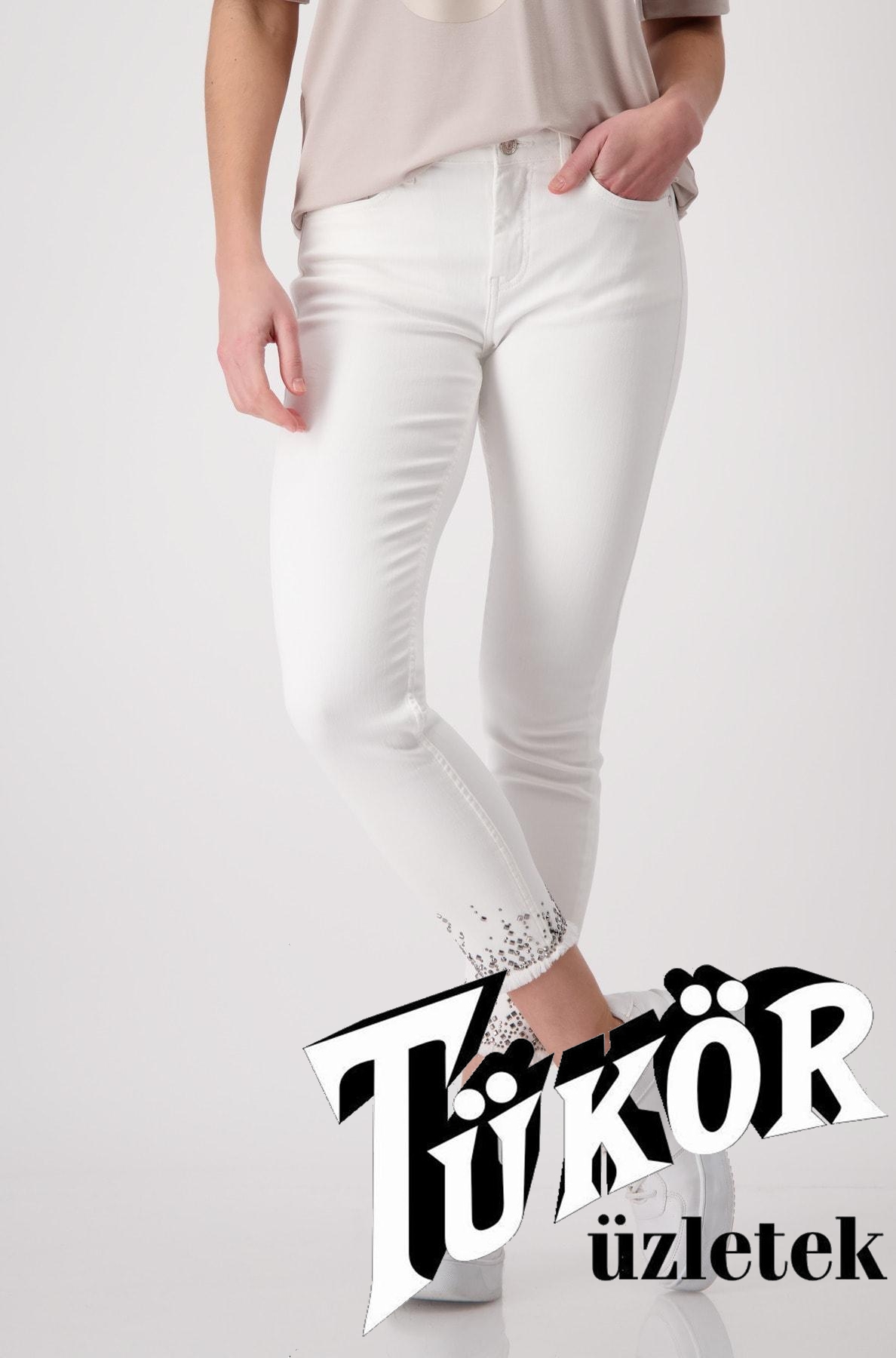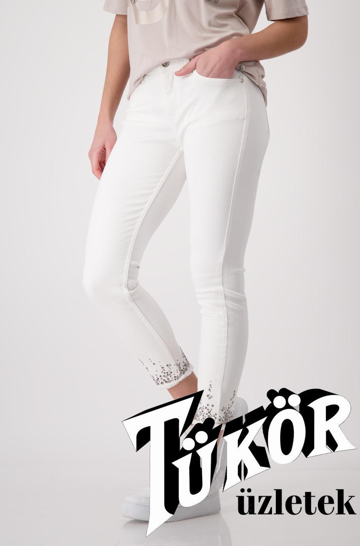 Monari női nadrág, 5 zsebes, szárán rojtos-köves