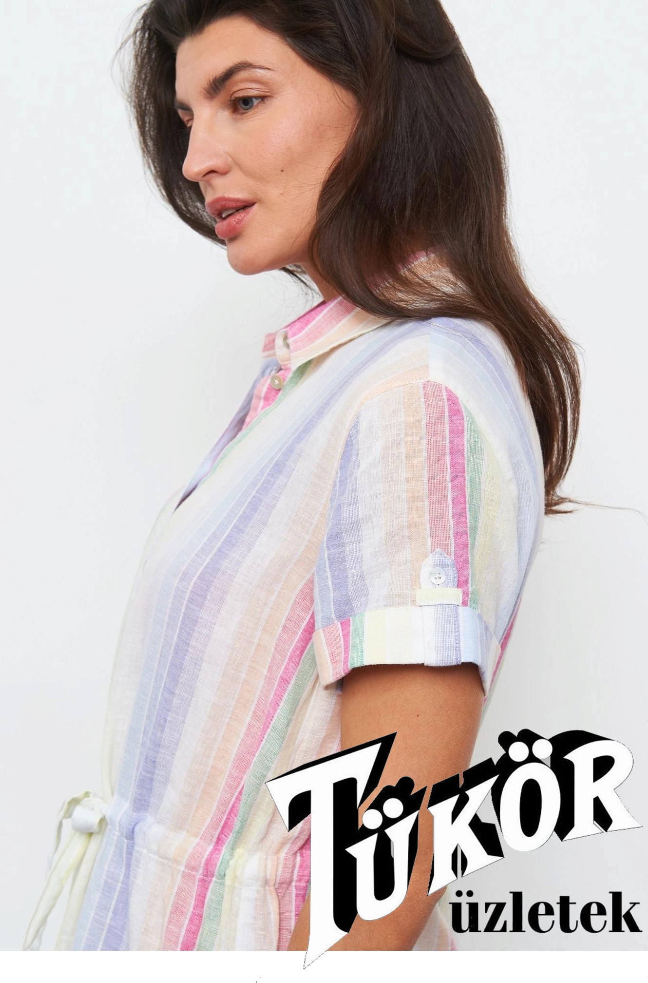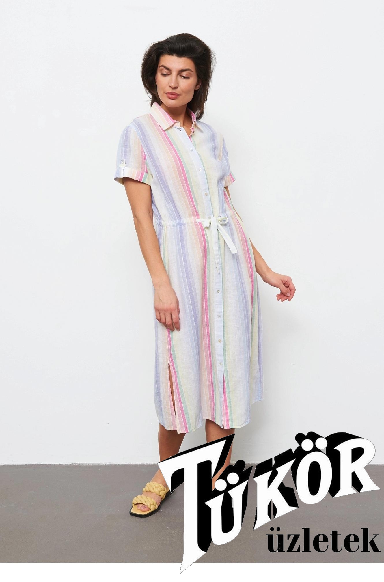 Gerry Weber női ruha, len, ingruha, megkötős, 2 oldalt hasított