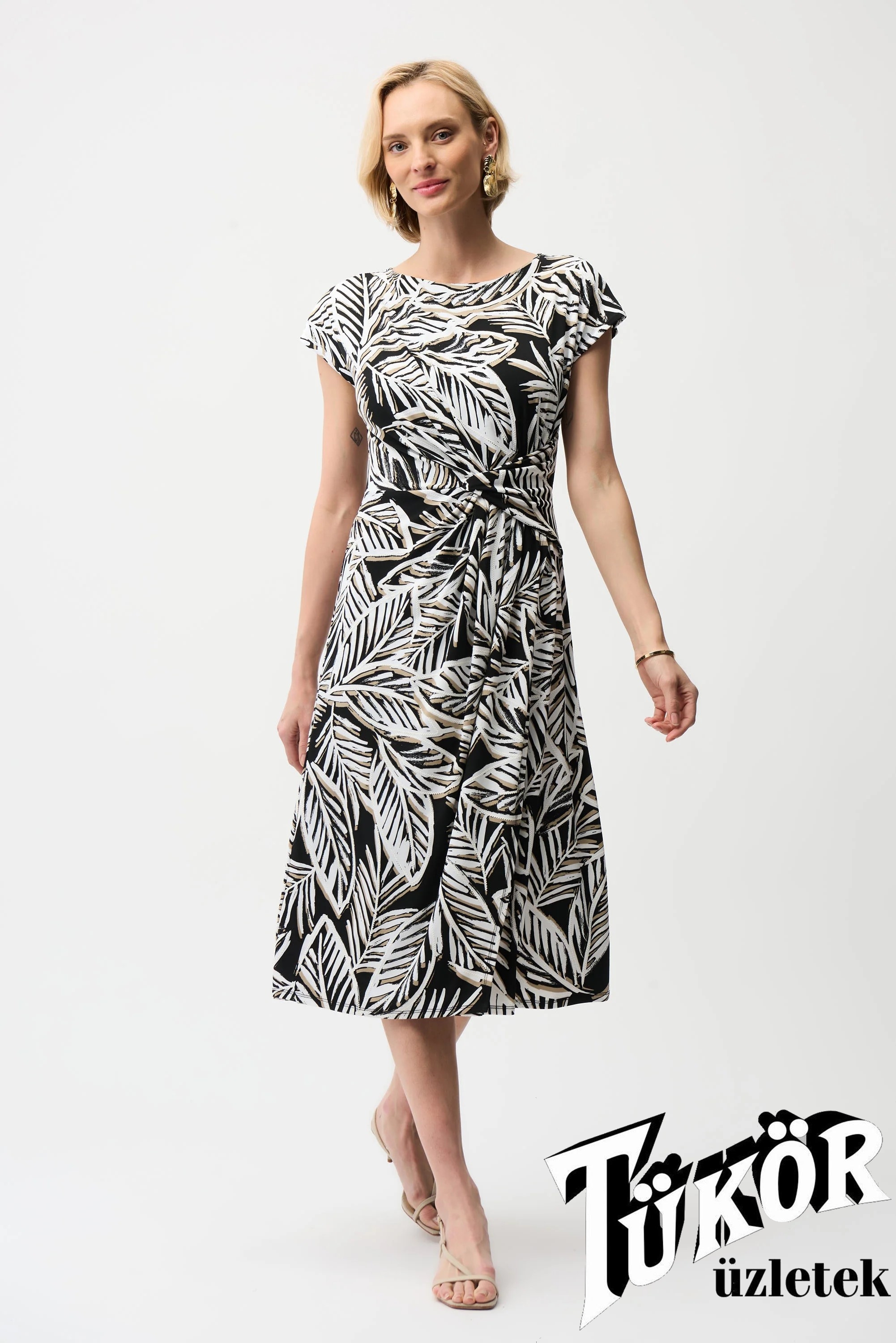 Joseph Ribkoff női ruha japánujjú,kereknyakú,elején díszcsomó