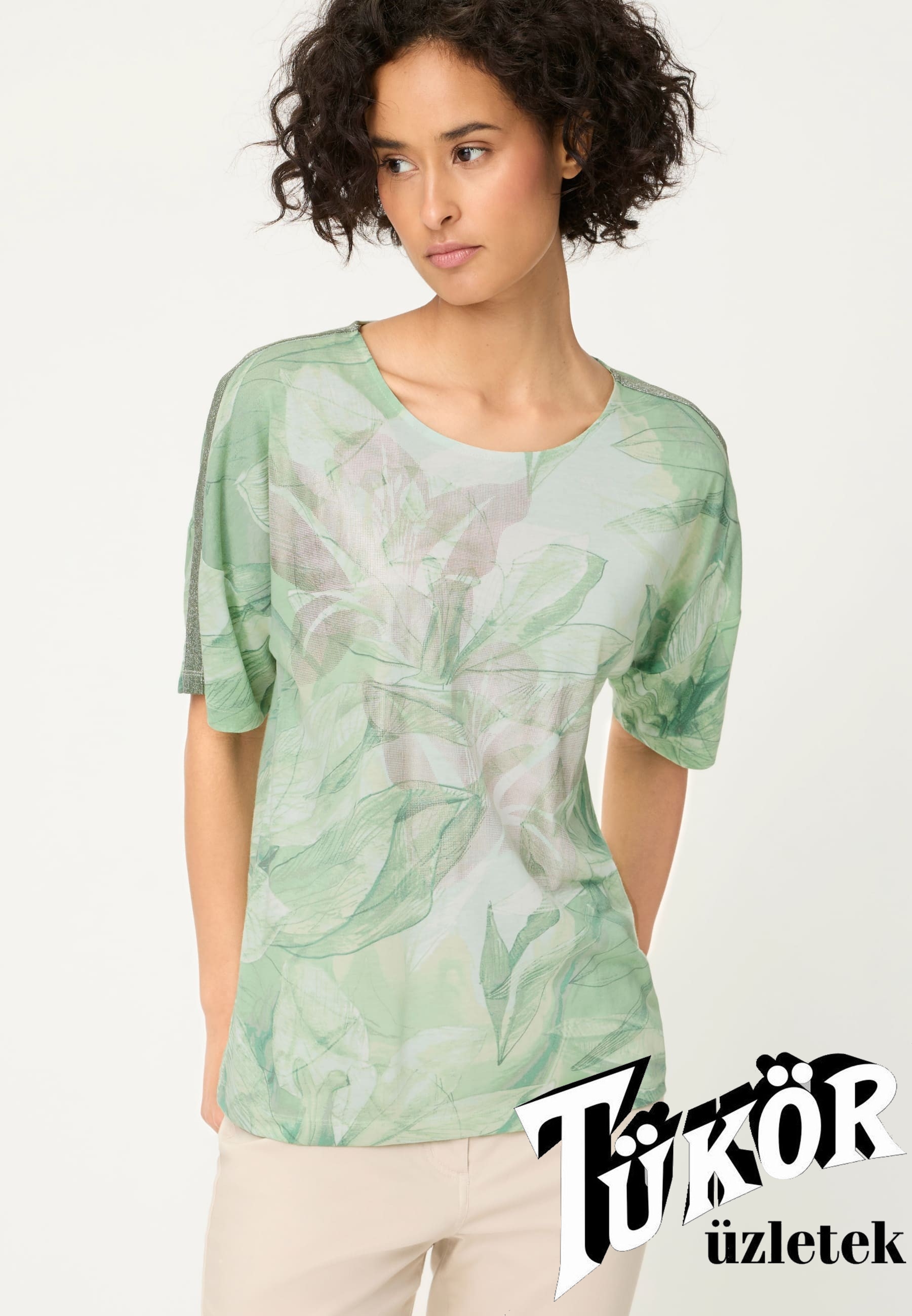 Olsen női felső "T"ujjú,kereknyakú,vállán lurex csík