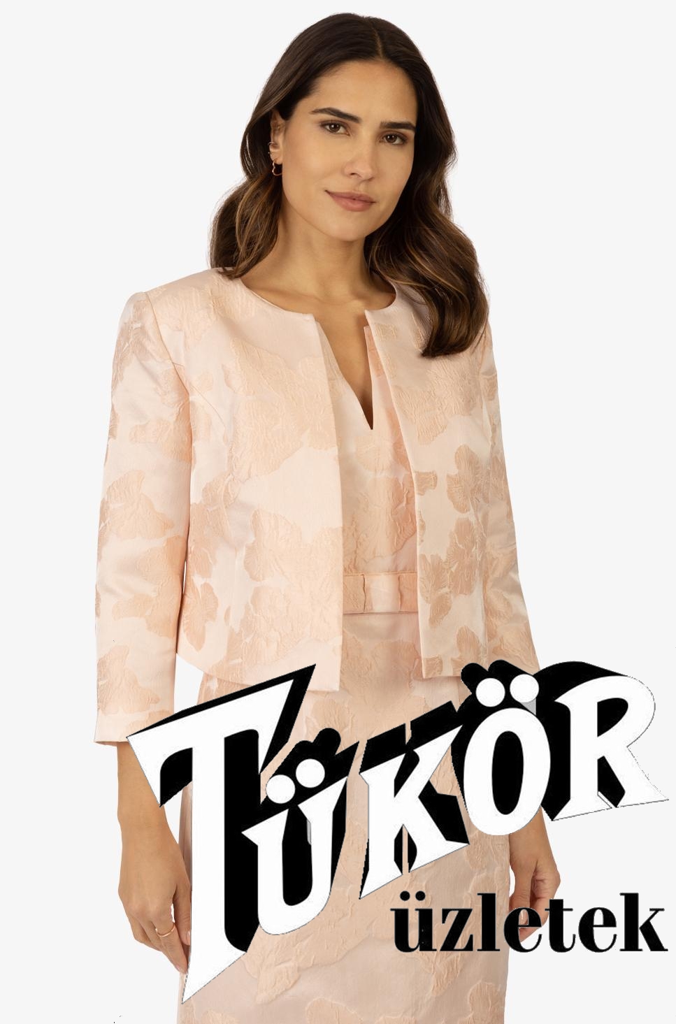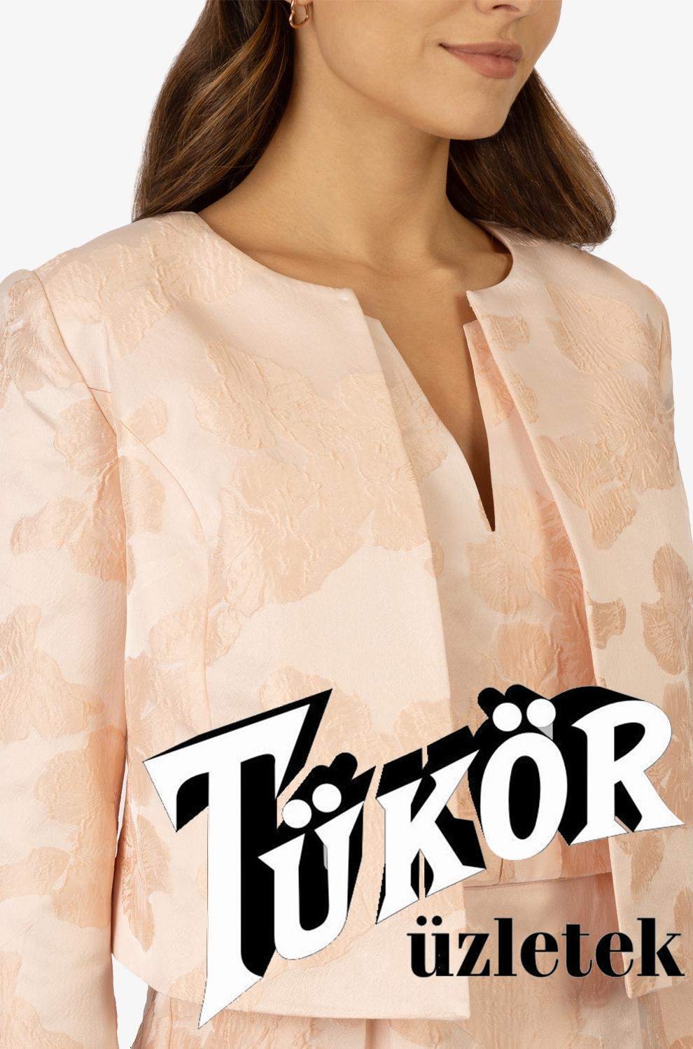 Apart női kabátka, chanel, brokátmintás, 3/4-es ujjú
