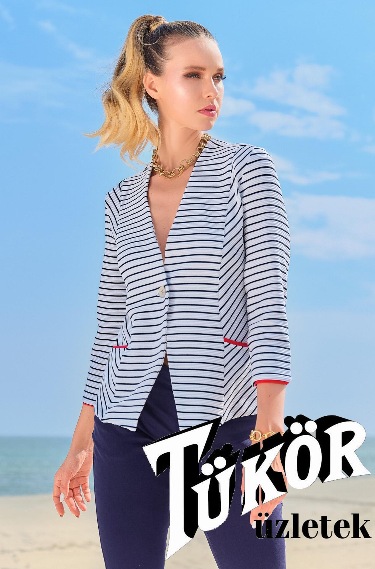 Dolcezza női kabátka,3/4-es ujjú,1 gombos,rávarrt zsebes,hosszított