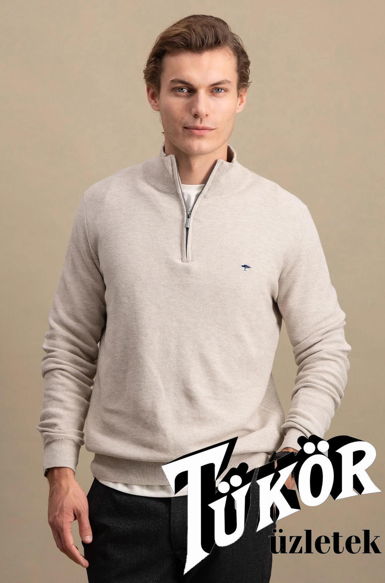 Fynch férfi pulóver kötött,nyakán cipzáros