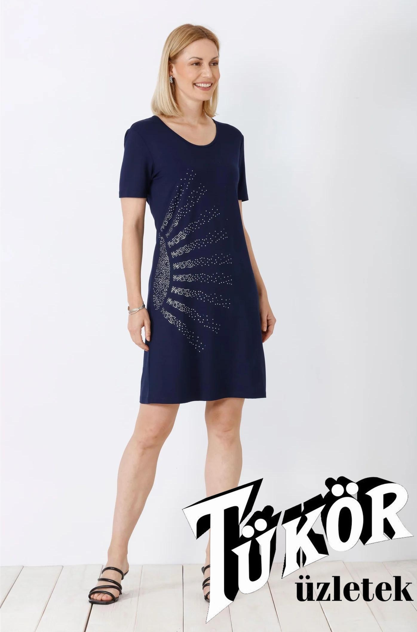 hajo női ruha, strasszos, rövidujjú, kereknyakú
