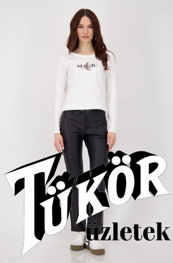 Monari női nadrág, bőrhatású, cipzáros zseb