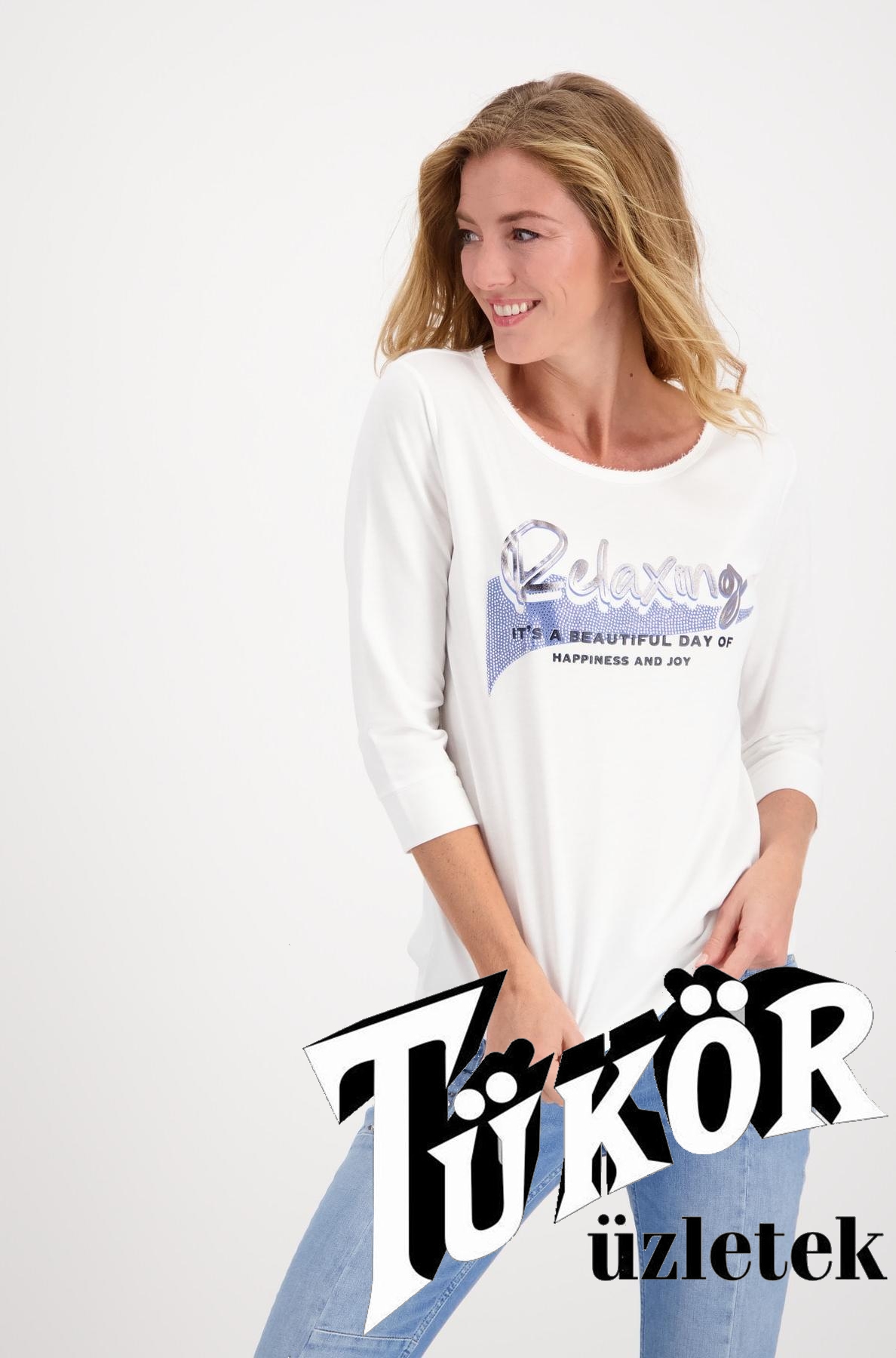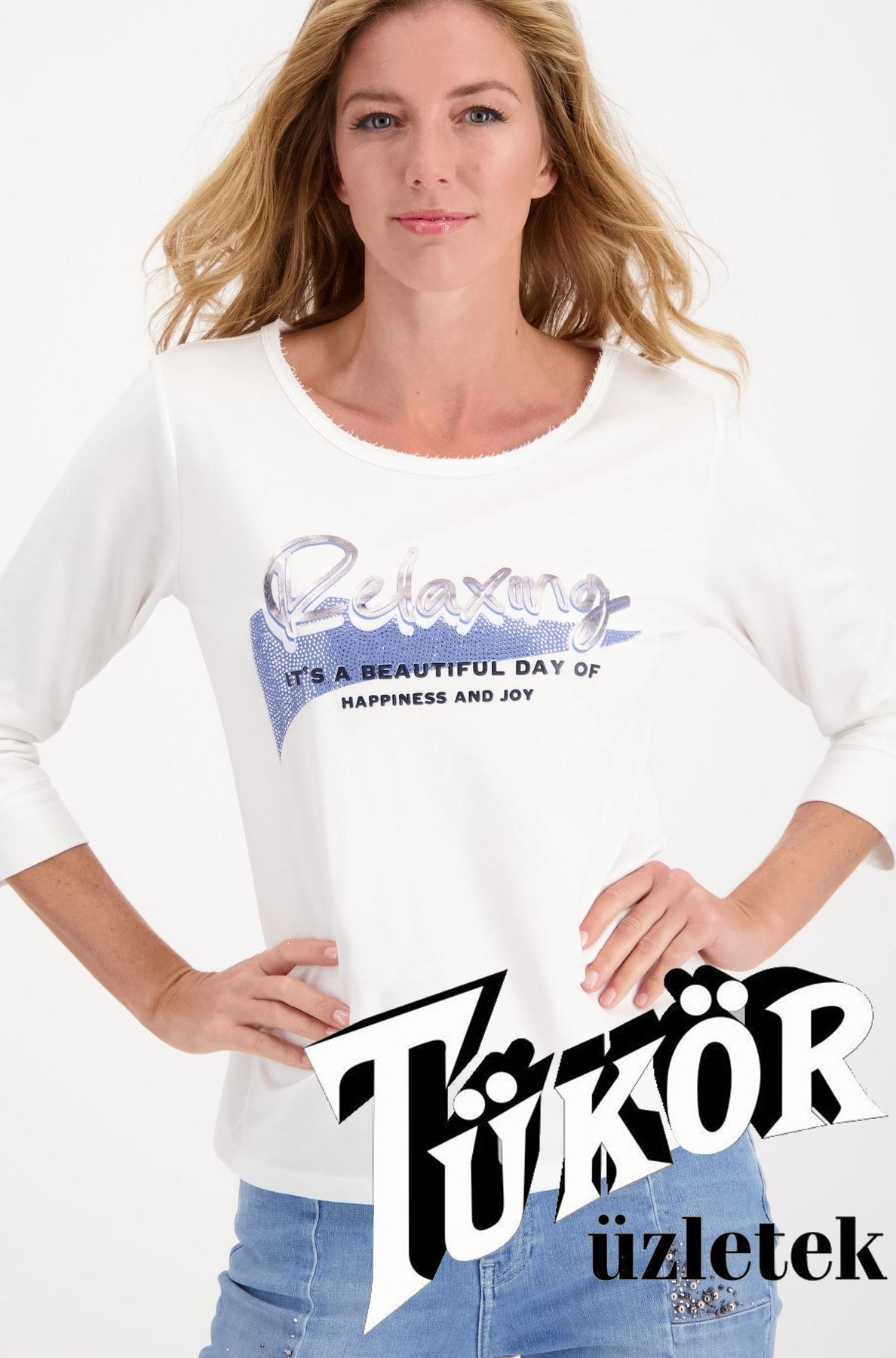 Monari női felső 3/4-es ujjú,elején strasszos felirat