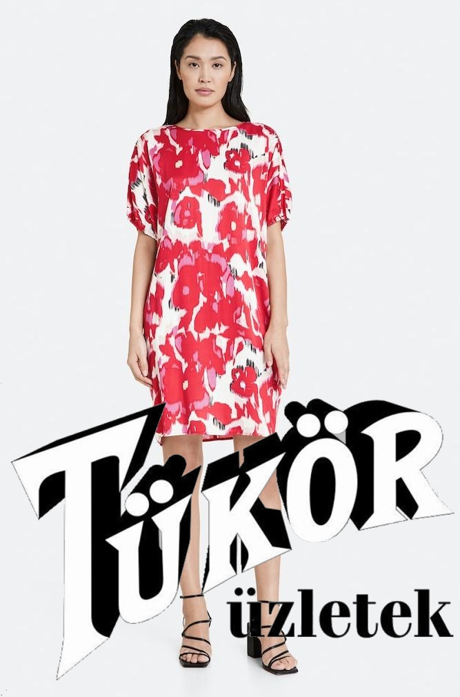 Taifun női ruha selyem,bő,kereknyakú,gumis ujjú