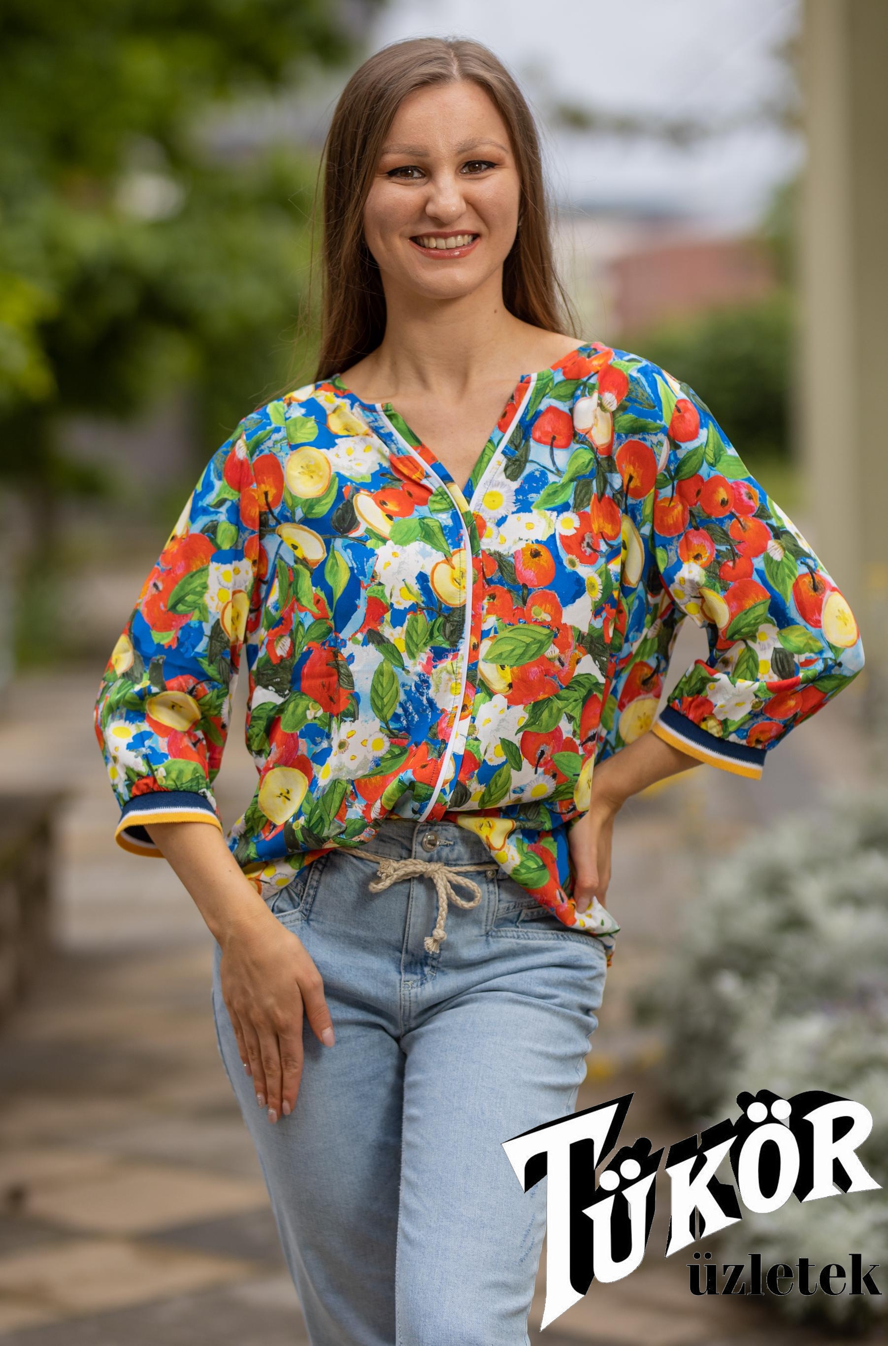 Maloka női blúz,3/4-es ujjú,spicces nyakú