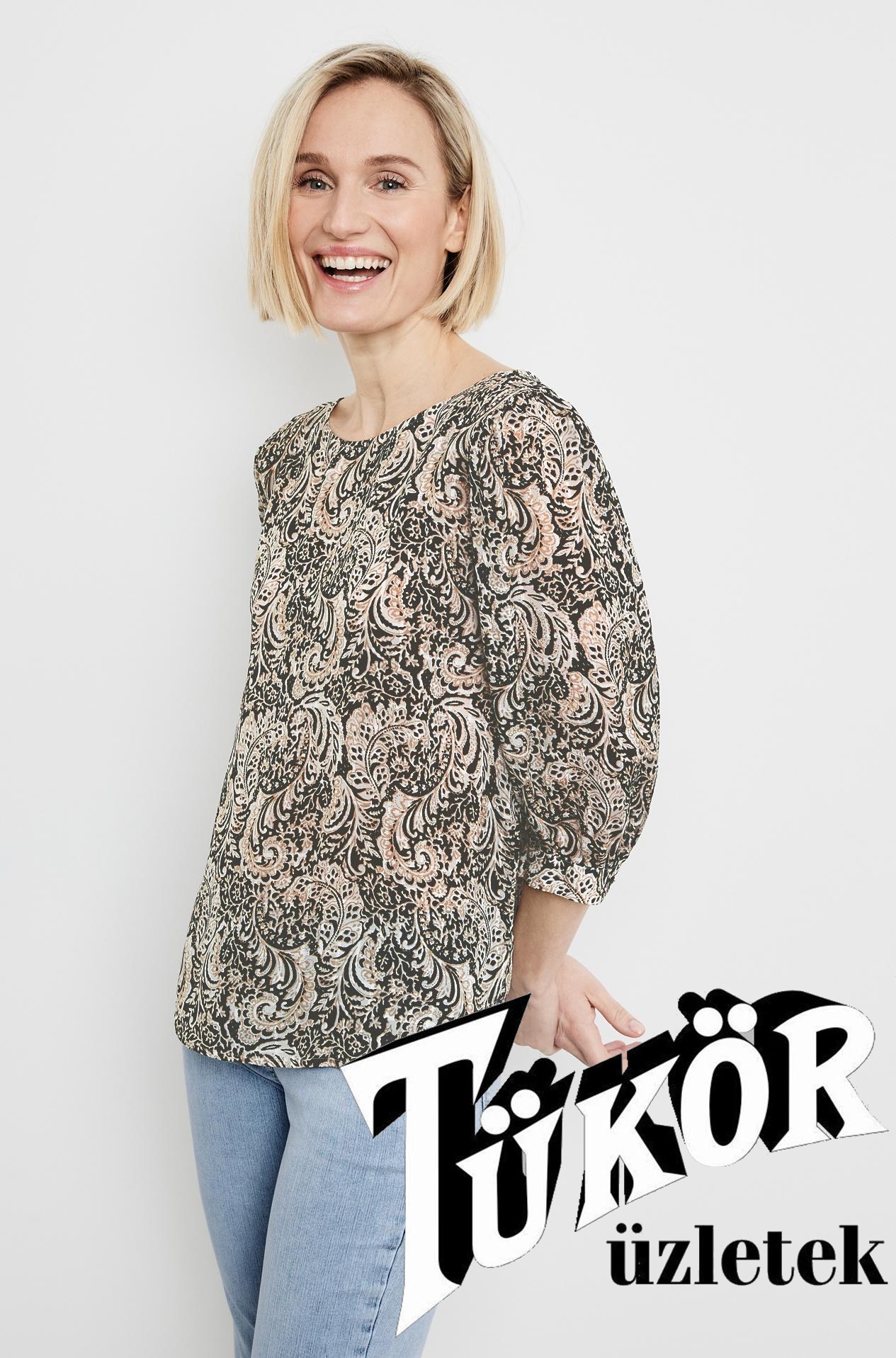 Gerry Weber női blúz 3/4es ujjú,kereknyakú,hátúl végig gombos