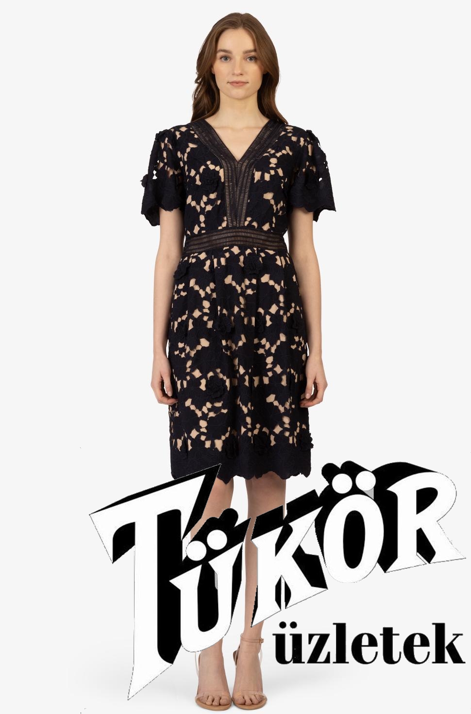 Apart női ruha csipke,rövidujjú,"V"nyakú