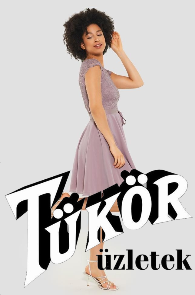 Swing női ruha derékban szabott,alúl muszlin,felül flitteres csipkés